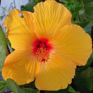 おはようございます。 ハイビスカス🌺ちゃん、朝からお花を咲かせています(*˘˘*).。.:*♡ 黄色のお花の子、気温の変化(?)でオレンジ色になって来ました。 オレンジ色も可愛い❤️