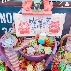 ( ゚▽゚)/コンニチハ 今日も春の陽気です〰️☀️ ぽんたちゃんに貰ったスケルトン鉢に🌵🌵寄せました〰️🤗イイ感じだ〰️♡ シーサー祭り参加します〰️ 我が家にはシーサー居ないので、ニャンコ箸置きで……(๑¯∇¯๑)ハハハ ∩(´∀`∩) ワッショーイ