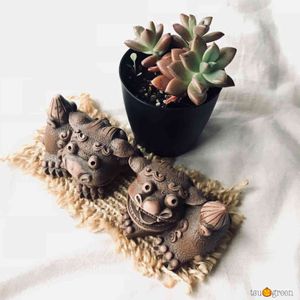 おはようございます🤗 シーサー祭りに参加🙌 シーサーに見えます? 沖縄に新婚旅行へ 行った時に作りました。何年モノだ💦 旦那さんのは、あまりにもシーサーに 見えない🤣ので、私のだけ✨ tsukikoさんのフェイク多肉も 増えてきて、リース半分までに (´∀`,,人)♥*.