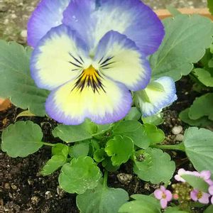 やっぱり春はパンジー。😊 去年も買った『よく咲くすみれ』 今年は『ミルクセーキ』『ソーダ』『レモネード』を植えた。 去年は最高気温が30度になっても元気で、7月まで楽しませてくれたけど、今年はどうだろう?☀️ 小さな苗しか手に入らなかったから、小さなポットに入れてハンギング。