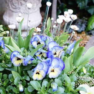 寄せ植え その⑤ 無意識に赤・紫・ピンクに偏りがちなので、青の寄せ植えにチャレンジ。 絵になるスミレはやっぱり可愛いです。