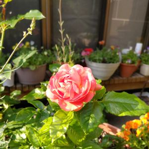 イーハトーブの香り 〜吉池貞蔵さん作出〜 房咲きにもなる花付きの良いフロリバンダローズ👏 遠目でも目を引く濃いアプリコット〜コーラルピンクの花色👏 フルーツの強香種👏 第8回国営越後丘陵公園国際香りのバラ新品種コンクールで金賞👏👏👏国土交通大臣賞受賞👏 連続開花性に優れ春から秋まで繰り返し咲く👏 まとまりの良いコンパクトな樹形👏 5枚目の樹形はちょっと横に広がってるけど💧 タイプ3ですが春はうどんこも出なかったし、葉っぱもツヤツヤ✨ピカピカ✨長雨の時は軒下に移動させようと思います🙂