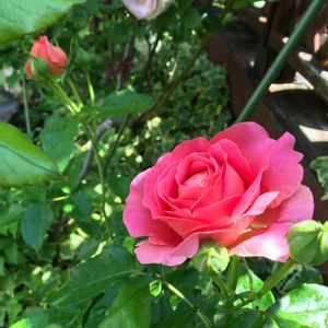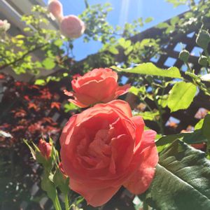 咲き揃ってきました ピエール氏とイーハトーブの香 午前中の日が当たらず西日が強い 成長の遅い一角だけど 昨年はシュートが急に伸びて 小さなフェンスに収まりきらず お隣のカエデの幼木は藪の中… さて、どうしようかな