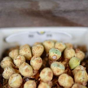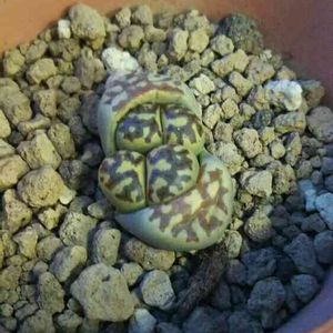 リトープス 曲玉 C100 Mundtiiです。私はこういういかにも擬態してますという見た目のリトープスが大好きです。 どうやら脱皮を始めたようです。
