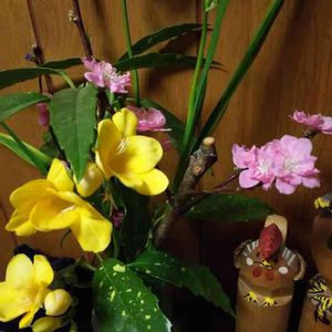 段々と、上から咲いては終わりの花桃🎵と、 フリージア❤ 桃の節句も後わずかですね☀
