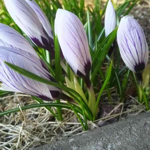 朝の🐶散歩 今朝から、あちらこちらで、クロッカスが咲き始めました🎵 私は開く前の、この ポニョっとした蕾が 好きです~~💕