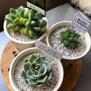 多肉植物を好きになりかけてる幼なじみにおすそ分け。ハオルチアの魅力も伝えようと100均で見つけたトゥルンカータも添えて。また一緒に園芸店に行こう!😊