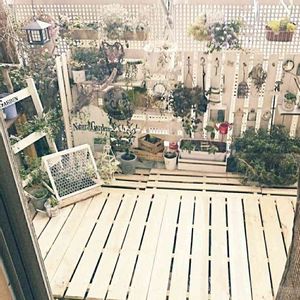 マンションの住宅改修工事前のベランダガーデニングヽ(*´▽)ノ♪すのこを敷き詰めてたんですが片付けが大変だったので今の形に変更しました😢⤵️⤵️この感じも好きでした。