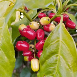 『青木 アオキの実🟢🟡🟠🔴🍃』 たわわに実ってる アオキの実 カラフルで 素敵すぎるぅ〜💕😆 こんなに沢山実が実ってるのは 初めて見ましたぁ👀