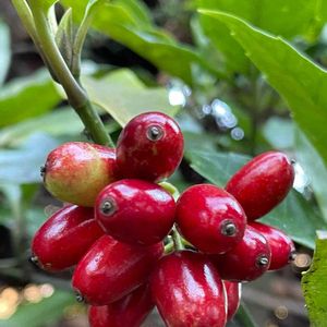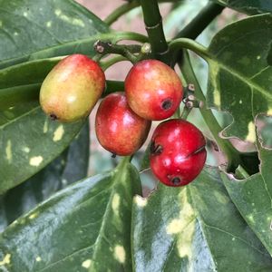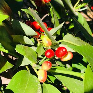 おはようございます😃 家の庭にアオキの木があり赤い実が 成りました🍒 花言葉は「若く美しく」「初志貫徹」 木には僅かながら赤く色づき とても素敵でした(*´∀`)♪