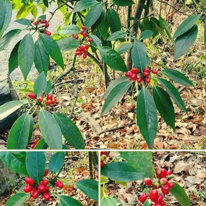 アオキの赤い実 アオキ 青木 ミズキ科アオキ属 散歩🚶♀️路より 一年中🌿がつやつやで青いので「青木」寒くなると実が赤く色づきとても美しいですねぇ🍀 🌿葉は火傷、切り傷に良い様です✴️😂