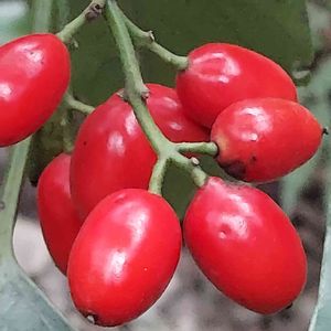 こんばんは。今までこの木については何も関心持たずにいましたが、昨日、日の光にスポット当てられた実の色にはっとさせられました。