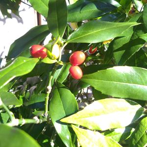 おはようございます😃 隣の公園で、アオキの実が、色づき初めています。この位の色が好きです。