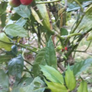 曇り空の下鮮やかな赤い実 アオキの実は コーヒーの実に似てますね☕️