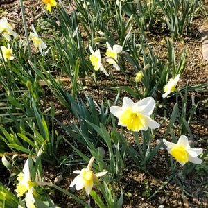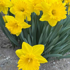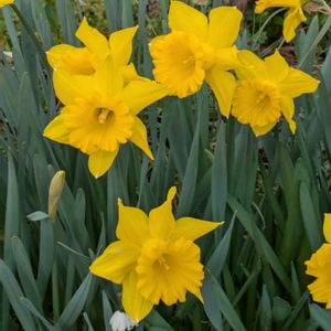 ラッパスイセンが咲いていました。 副花冠がラッパ🎺のように長く、縁はフリルのように波打ち、突き出しています🎶 背丈が約30cmの一本の花茎から1輪の花が咲きます💕😃