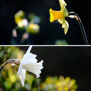 4.9 なんだか忙しい1日の終わり… 暮れかける庭へ… 真紅の椿から墜ち征く夕陽… 夕陽の耀を見送る乙女椿… やっと開花した… 小さな一花 雪柳… ピン!と開いた喇叭水仙… コレから咲くよ〜♡の水仙… 春は開花に忙しいお花達です♡