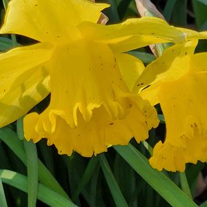 ラッパスイセン 今いろいろなスイセンが咲いています🎶 前に姉からもらったこのスイセン なくなったかと思ったら残っていました😊 お花が終わったら鉢に植え替えようと思っています 白いラッパスイセンが多い中 黄色のものもチラホラ これも鉢植えに、、、