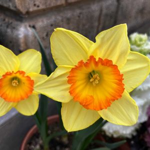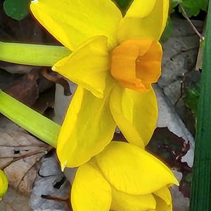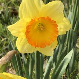 トランペットのようなお花、黄色とオレンジ色の「ラッパスイセン」をパチリ!📸💛🧡🌿😄🤗🌞✌️