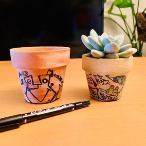 🏷ムッチリぷくぷくの日 🏷6日はカエルの日 KELAさんのリメイク鉢、左が、初めて狩った鉢です。🐸ケロッ 素焼き鉢に、マジックだけで、描いてるのが、可愛い〜😍🎶 年季が入って経年劣化していたから、マジックで修正😁 右上のスペルが、、、たぶん鋳鉄とか鋳鋼って意味だと思うんだけど🧐 違うかな❓ ぷっくりな月美人しゃんの子株が、大きくなって窮屈そうなので、植え替えよ😆