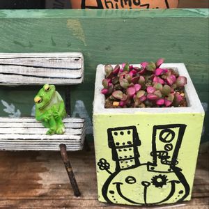 ケラケラさんのセメント鉢?に寄せてみた💐 5cmくらいの小さな鉢🎶 細かい作業苦手なくせにチマチマやりたがる😅💨 かわいいロボケロ🐸?で大概誤魔化せるかな🤣🤣 今回もほとんどが氏名不明さん🤣🤣 葉挿しっ子も親葉が無しの独り立ち組使い果たし 寄せ植えしたいカット苗も尽きてきた😓 やっぱり…何か狩りに行きたい…😷😷 平日 空いていそうな時間に行くか😷👍😷👍 その前に トイレットペーパーとティッシュだな そろそろ無くなりそうだよ😓なのに… 今朝 ドラッグストアの駐車場にも入れず帰宅😱 凄い人だったよ〜😭😭 明日は、買えるかな?🤔