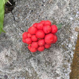 玄関先のオモト葉をかき分けると実が赤くなっていました❤️ 🇯🇵原産ユリ科オモト属 縁起物植物 花言葉「長寿」「長命」