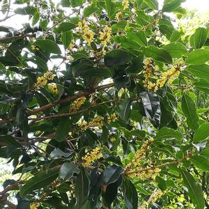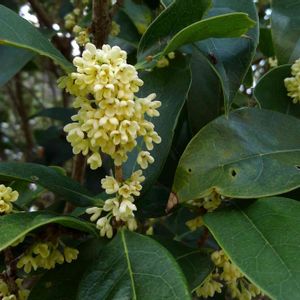ウスギモクセイ[薄黄木犀] 別名ウスキモクセイ モクセイ科、属 10月20日撮影 ギンモクセイの変種とされ、花の色や香りが金木犀と銀木犀の中間くらいでした 🏷木曜日は木に咲く花 参加させてください