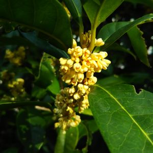 甘い香りに誘われて… キラキラ満開✨✨✨ 『ウスギモクセイ』薄黄木犀 モクセイ科 別名・シキザキモクセイ 由来は黄白色で白がかった黄色という感じの花が咲くこと、から。