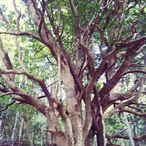 陽が昇った山奥自宅近くの山を歩く 樹木の幹や枝の動きに躍動感を得る おはよ 今日もよろしく