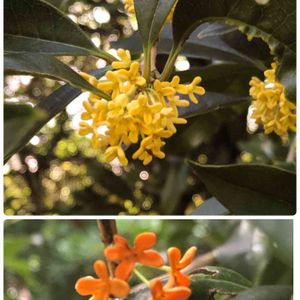 今日、今年初のキンモクセイの花(下) を見つけました🧡 そのあと、植物園へ行ってみたら…… ウスギモクセイ(上)が満開で、 爽やかに香っていました💛🌿 色も香りも、淡い感じです