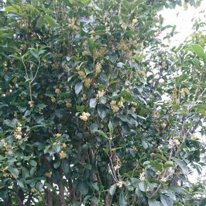 庭で良い香りがするのは 金木犀が咲きそうなのかと思ったら ウスギモクセイが沢山咲いてました😅 ウスギモクセイは銀木犀の変種だそうです。 そう。薄黄木犀が先なのよね☝️ 高いところだから全然分からなかった💦