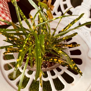 本日仲間入りしたクロトンカーリーさん❤️変異?葉っぱからライナー出て先っぽに葉っぱ?不思議ちゃん🤔どなたかご存知?