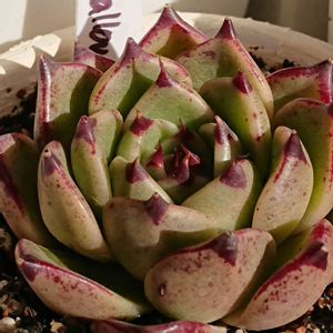 エケベリア ハロウィンhyb🎃 先月NBガーデンさんからお迎えした子です。 ハイブリッドと書いてあるから、ハロウィンと何かの交配種。 赤い爪はハロウィン譲りなのかな❤️ 気温が下がってきたから紅葉を期待していたけど、我が家に来た時からあまり変化はありません😅 明日はハロウィン👻 3年前に作ったリメ鉢に入れてやっと投稿💦