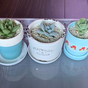 多肉植物始めました💖 名前めっちゃ長い子居る。。 (左から2番目)