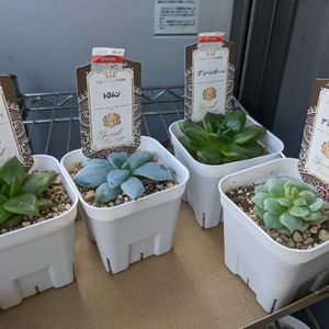 憧れの王冠ラベルの多肉ちゃんをお迎えしました。 立ち寄ったホームセンターでの出合いにふるえました。✧\(>o<)ノ✧ 悩みになやんで、4種類。
