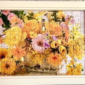 今日の1枚🤗💕💕💕 孫と一緒に作ったジグソーパズル🧩🧩🧩 元気の出る黄色いガーベラ🌼🌼🌼🌼🌼 花言葉🌼🌼 希望です(((o(*゚▽゚*)o)))♡ 玄関に飾りましたよ🤗😍😊 とっても明るくなった嬉しいです(╹◡╹)♡💖💗💗