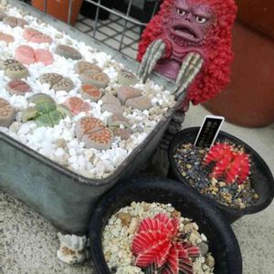 以前、マーロンさんから 「緋牡丹錦あげる~🎵」と言われてて 楽しみに待っていたら 届いたそれは やけに箱がデカい。( ・∋・) こりゃ姐さん、緋牡丹錦愛ゆえに、厳重な包装にしちゃったのかな?と思ったら 確かに、厳重だった。(゚∈゚ ) 可愛いクマ🐻さんのテープでぐるぐる巻きになってて (あの、お洒落なマーロンハウスからは想像もできないようなディズニーっぽいやつ.....。) 緋牡丹プラス、四角い箱っぽいものが......。( ゚∋゚) お弁当箱?ドカベン用の? ( ゚∋゚) トリの脳ミソなど、所詮その程度なのだ....。 丁寧に包みを剥がしていくと 中から巨大なリトープスの寄せ植えがっ⁉️ ゚ ゚ ( Д ) 先日、「今、寄せ植え中なのよぉ🎵」 と言ってたのはコレやったんかいっ😂 エケとかセダムとか、寄せ植えに繋がりそうな植物はあまり見たことないのに、ヘンだな~?と思いましたわよ、お姉さま✨😂 有り難く頂戴いたしますわ✨✨✨ 一生大事にします🎵 で、緋牡丹錦といえば、コレ🎵 そう、野生爆弾のくっきー❤️ を添えてみました🎵 え?ピグモンに見える?(⌒‐⌒) そんな馬鹿な‼️ ....やっぱり、くっきーですやん✨😆