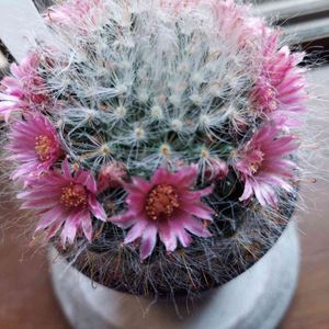 このサボテン、お連れしたのは1、2年前かよく覚えていません。沢山花咲いてきました〜 GSでサボテンに花が咲いているのを見かけるだけでしたが、ようやく我が家にもこんな可愛らしいサボテンに〜🎀 何て可愛らしいのでしよう! 他、6個、サボテンの植替えしました。 ベランダでやってみて、丁度、良い空間にて、落着きました〜✌️