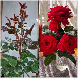 お天気不順!の中、 ガンバる🌹薔薇です。 この春はこんなに立派に咲いてくれ切り花を、2週間前パチリ。 今、新たな新芽が伸びてきています。 すごいなぁ! 成長の度合いに、感心してしまいます🚩
