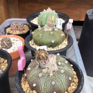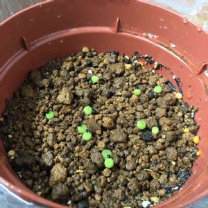 去年、自家採種したロフォフォラの芽が出ました🌱 銀冠玉♀×烏羽玉♂です。