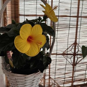 おはようございます✨✨ 今日のお花 ハイビスカス🌺 かわいい黄色の花です。 リビングで眺めてます💛