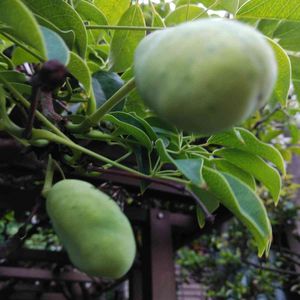 ムベの実 いつも前を通るお家のムベ いっぱいなってるんです〜😋 まだ青いですね🍈