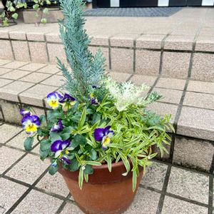 この時期の主役はやはりパンジー・ビオラですねー🌸 立、高、下。点、線、面。を意識して寄せ植えしてみました^_^
