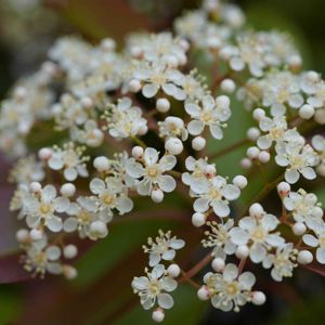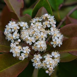 🔴 アカメ よく生け垣として利用されます。カナメモチとオオカナメモチを交配してつくられた園芸品種です。 ⚫︎バラ科 カナメモチ属 ⚫︎原産 アメリカ ⚫︎花期 5月〜6月