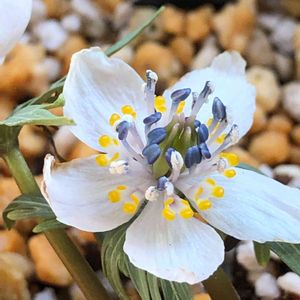 白い可憐なお花 と、思いきや 白く花びらに見えるのは萼片。 花弁は…まんまるポツポツの黄色の下がY字の花弁だと言うので どうなってるんだろう?って蹲み込んでじーっと・・・ほんとだ!花びら😳 不思議なお花ですねぇ セツブンソウ、数枚続きます。 載せ過ぎ…でも、出会えてうれしくて すいません(^◇^;)