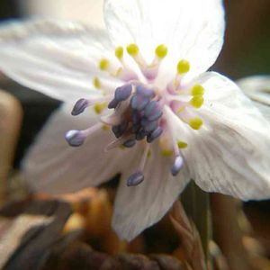 セツブンソウ TVで紹介されているのを見て京都植物園へ行きました 節分の頃に花を咲かせます 大きなカメラ持った方が這いつくばって撮ってました 石灰岩地帯の多くみられる多年草 落葉性広葉樹林の林床を好み早春に萌芽して開花し広葉樹の葉が展開する頃には休眠に入る 地下には塊茎がある 草丈は10㌢ほど 花径は2㌢ほどの白い可憐な花を咲かせます