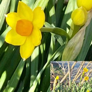 全体に黄色い水仙が咲いていました これも日本水仙⁉️ 房咲き水仙⁉️ 房咲き水仙はニホズイセンのように一株に沢山の花がつくスイセンの総称だそうです 黄水仙は葉が イグサのように細いそうですね💛 ヒガンバナ科スイセン属