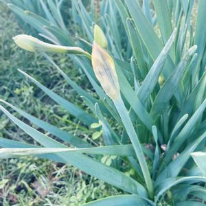 🍀スイセン🍀 (黃房水仙) 葉ばかりさんで一本しか咲きませんでした。 葉は枯れ始めるまで切らずにがまんしているんだけどなぁ~