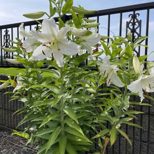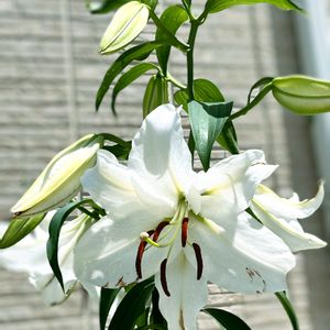 妻の会社に届いたのを花終わりにいただいた株。春に屋外放置に切り替えたら葉っぱが焼けてしまったけど、なんとか咲いてくれた。 カサブランカがさすがの強香っぷりで存在をアピール中。