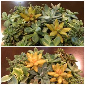 こんにちは🌞 年末に寄せましたが(下)、ずっとテーブルの上なので 紅葉した✨銘月✨が緑に戻ろうとしています。 2週間ほど経ちましたが もう根付いているもの もあります。 春がきたら元の地植えコーナーに戻すつもり。 多肉植物っていろいろ楽しませてくれますね💓