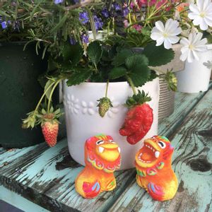 シーサー祭りに参加します♥️ ガーデンストロベリー🍓落ちて来ないかなぁ٩(ˊᗜˋ*)و って待ってるみたいだよね♥️